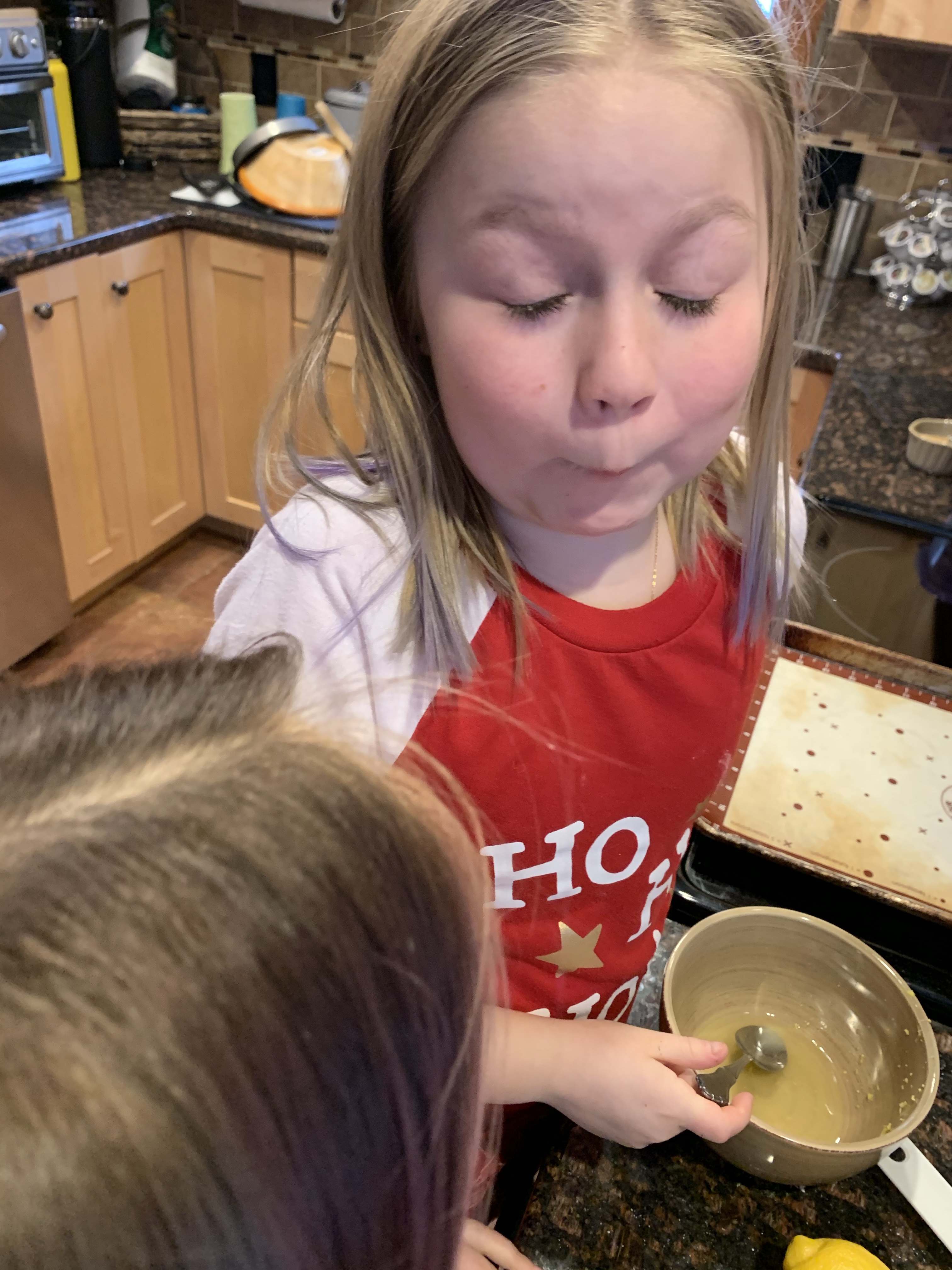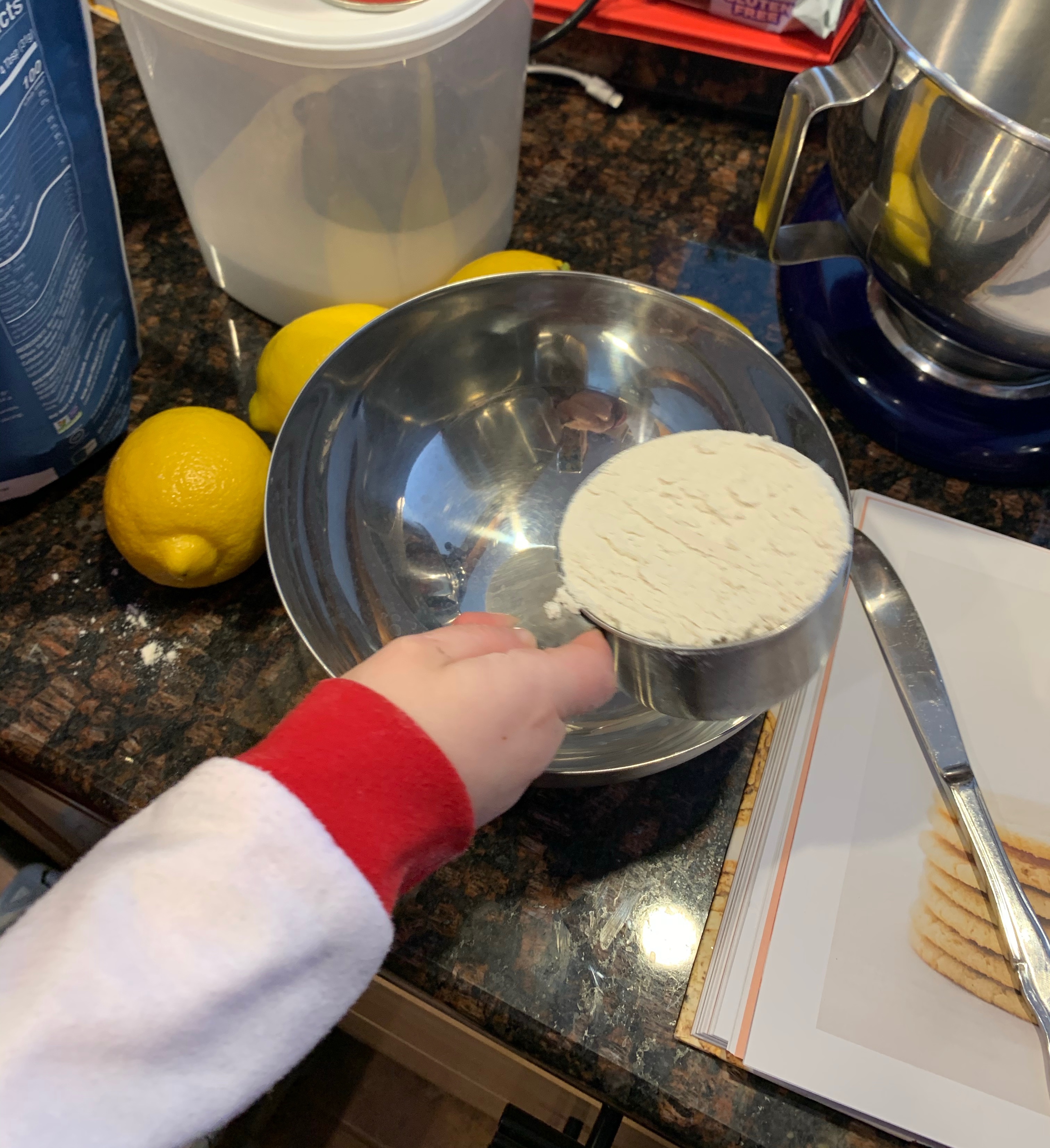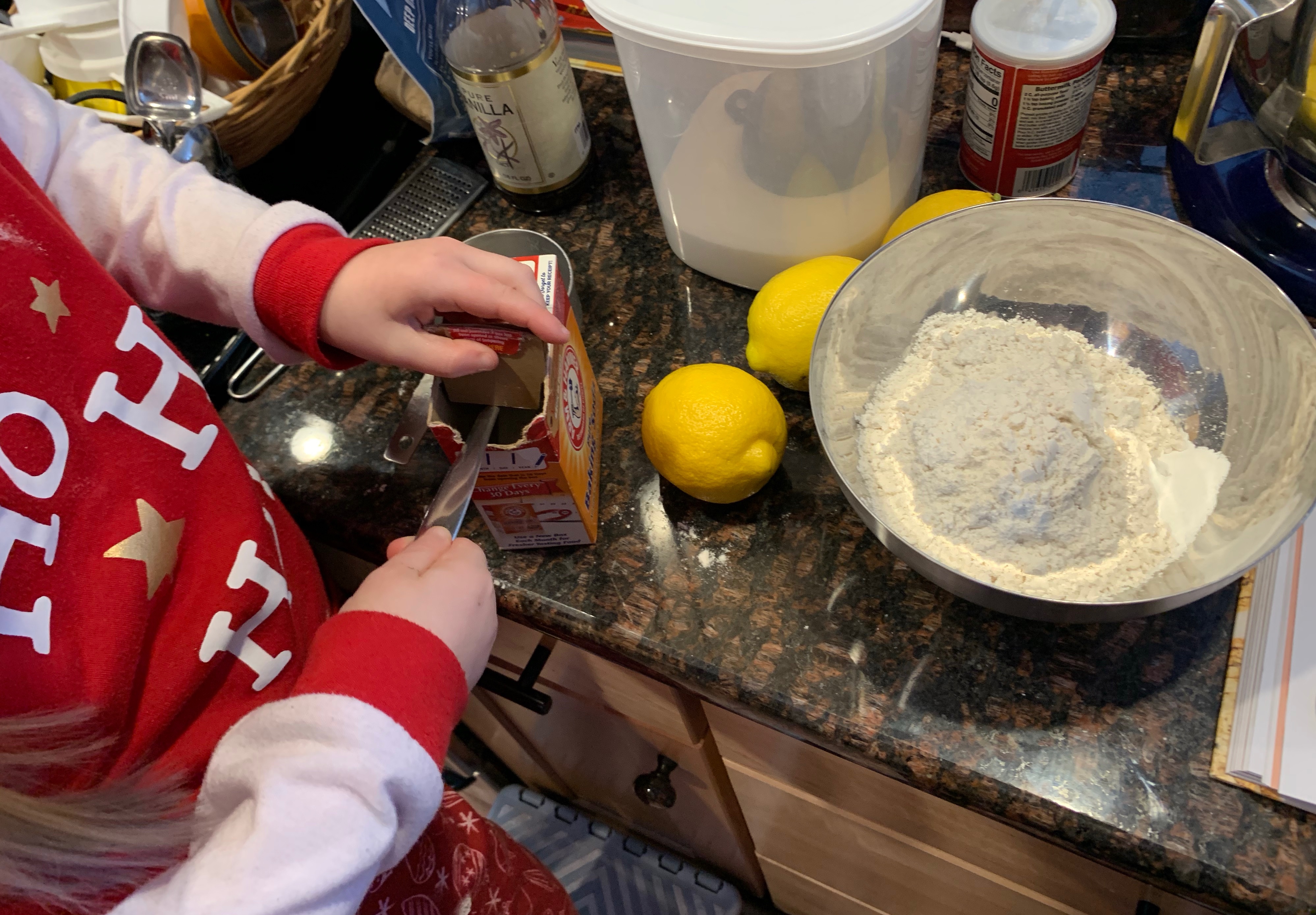 I was wanting to get the kids outside but there was all this whining about it being cold, the wind, and getting dressed. It wasn’t a battle I was willing to fight, and honestly, I didn’t want to go in the cold. Most of the time it doesn’t bother me, I’m a Vermonter after all, but some days it’s just unappealing. We had a big bag of lemons sitting on our counter so we decided to use that old saying “make lemonade out of lemons” but we didn’t make lemonade and the lemons were the super cold wind chill…so maybe not so much with the saying, but anyway, it’s citrus season and we made lemon cookies!