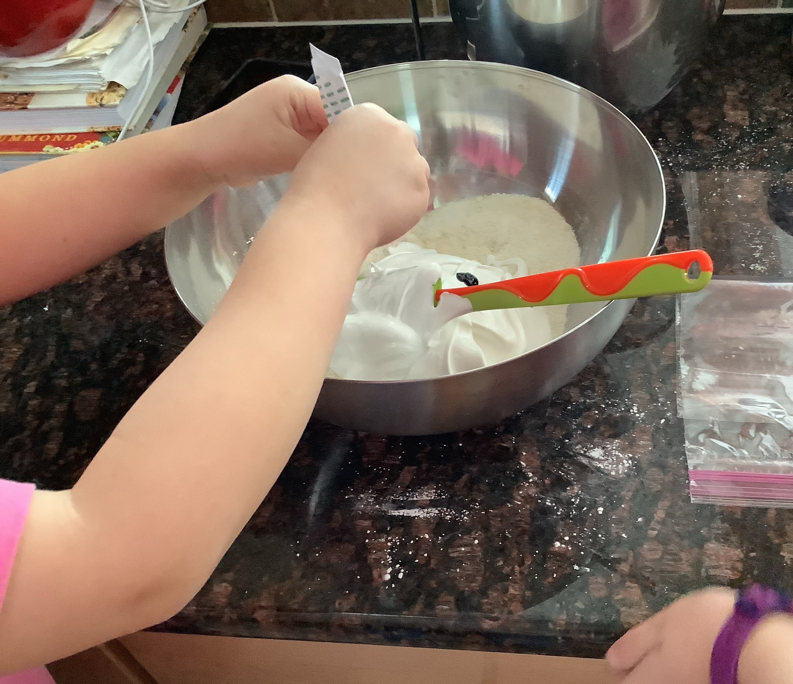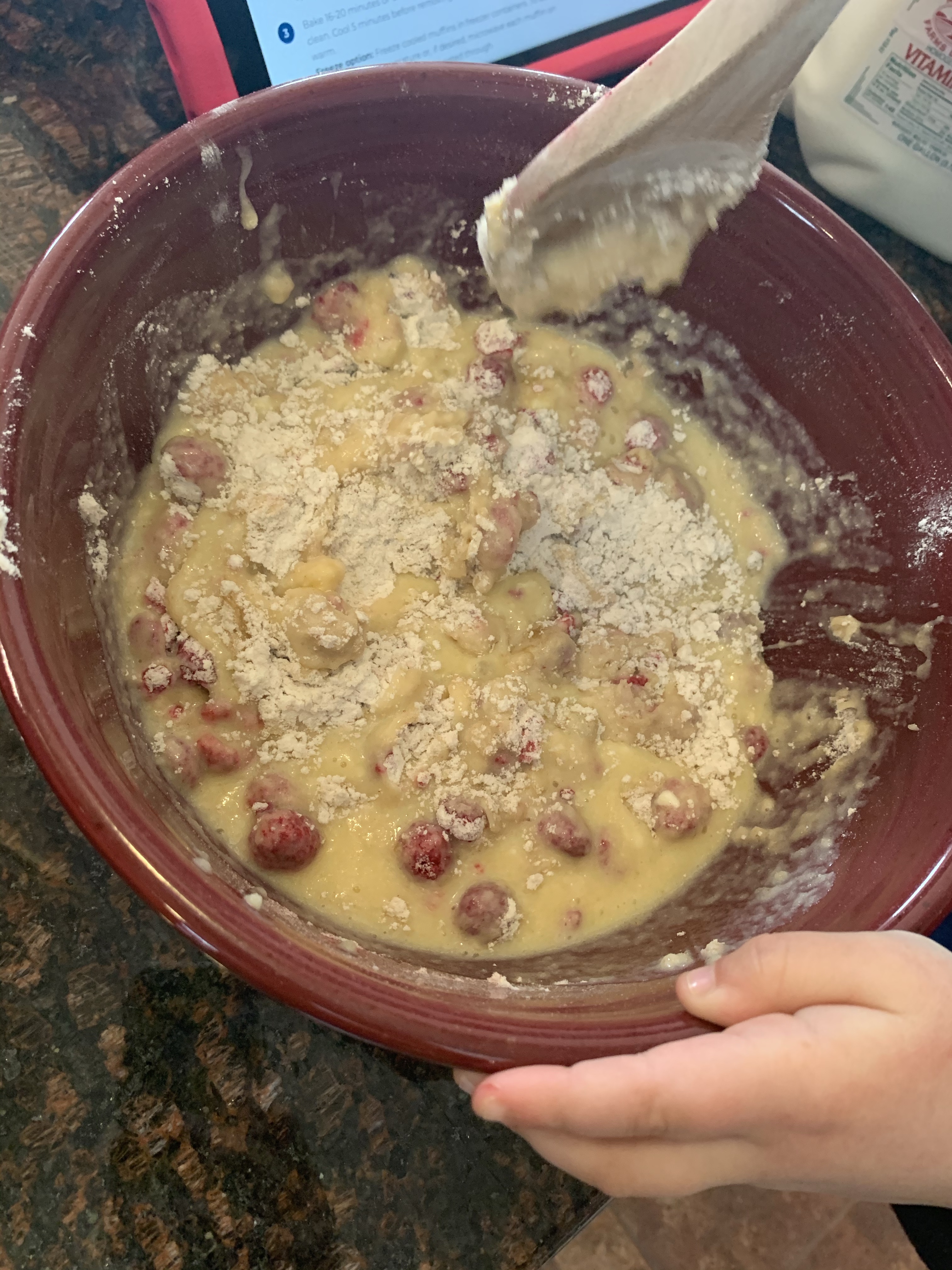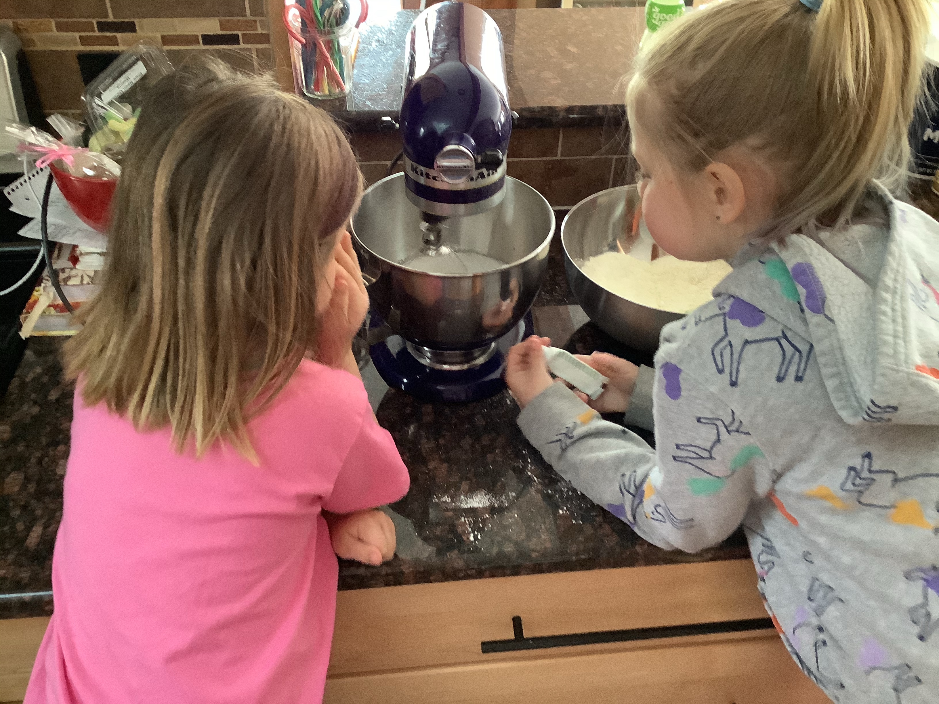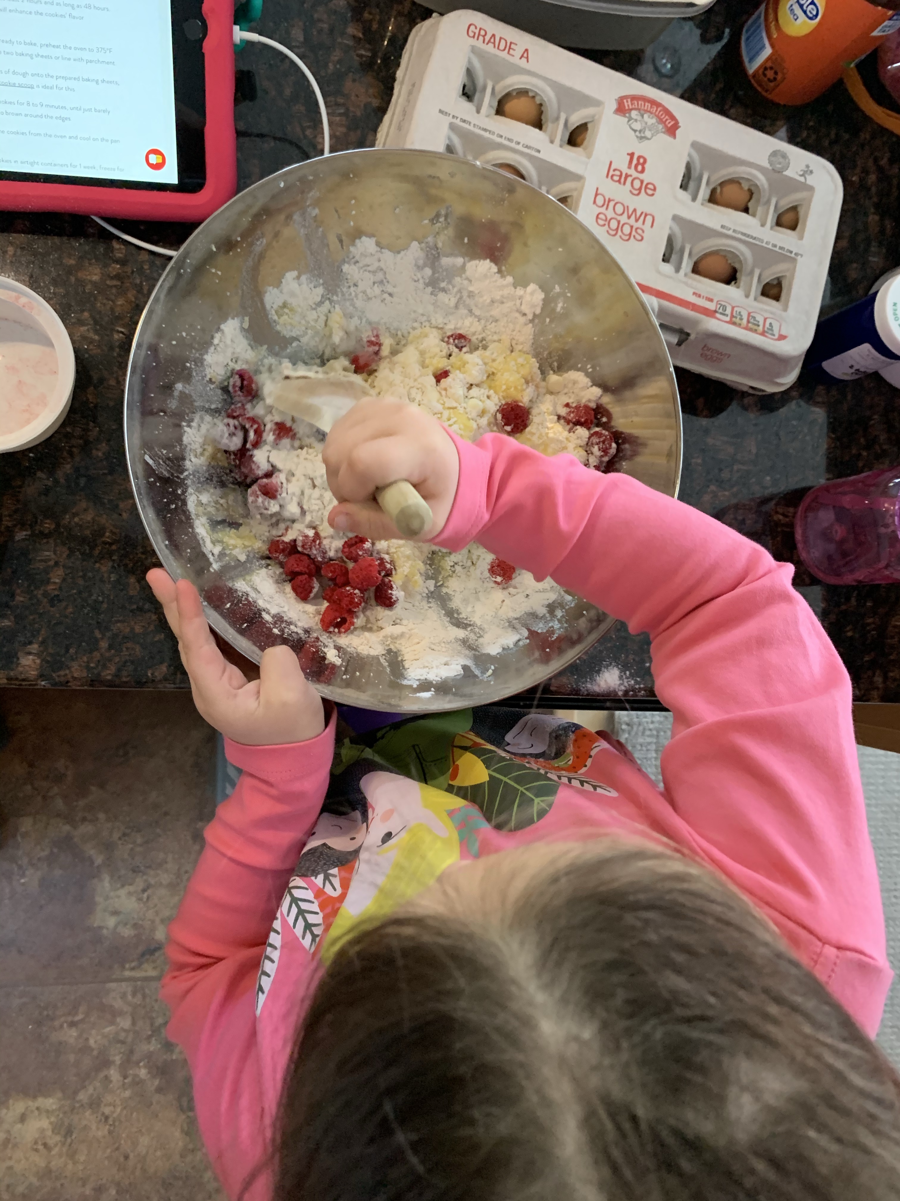 When we started this journey we bought some freeze dried fruit. Per usual I didn’t make a list and just ordered a bunch from amazon and we ended up with some that the recipes we had our eyes on didn’t require. Freeze dried raspberries have been sitting on the counter just begging to be used for something. The girls finally came up with it! We altered a King Arthur Baking recipe for Vanilla White Chocolate Drops. Instead of using 2 cups of white chocolate chips we used one and used a cup of our freeze dried raspberries! They were similar in making to a traditional chocolate chip cookie, but now we have to chill the dough for at least 2 hours! We’re very excited to see what these will turn out like. Here’s the link to the original recipe: https://www.kingarthurbaking.com/recipes/vanilla-white-chocolate-drops-recipe. I suspect that these little beauties would be great with cranberries in the fall, maybe some toasted walnuts. The possibilities are endless!