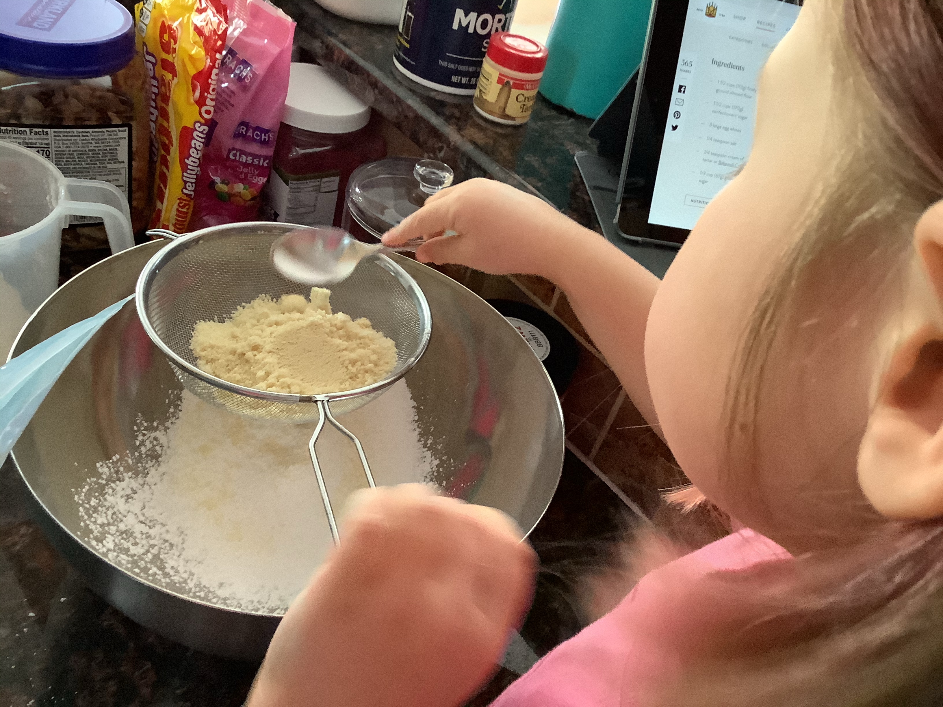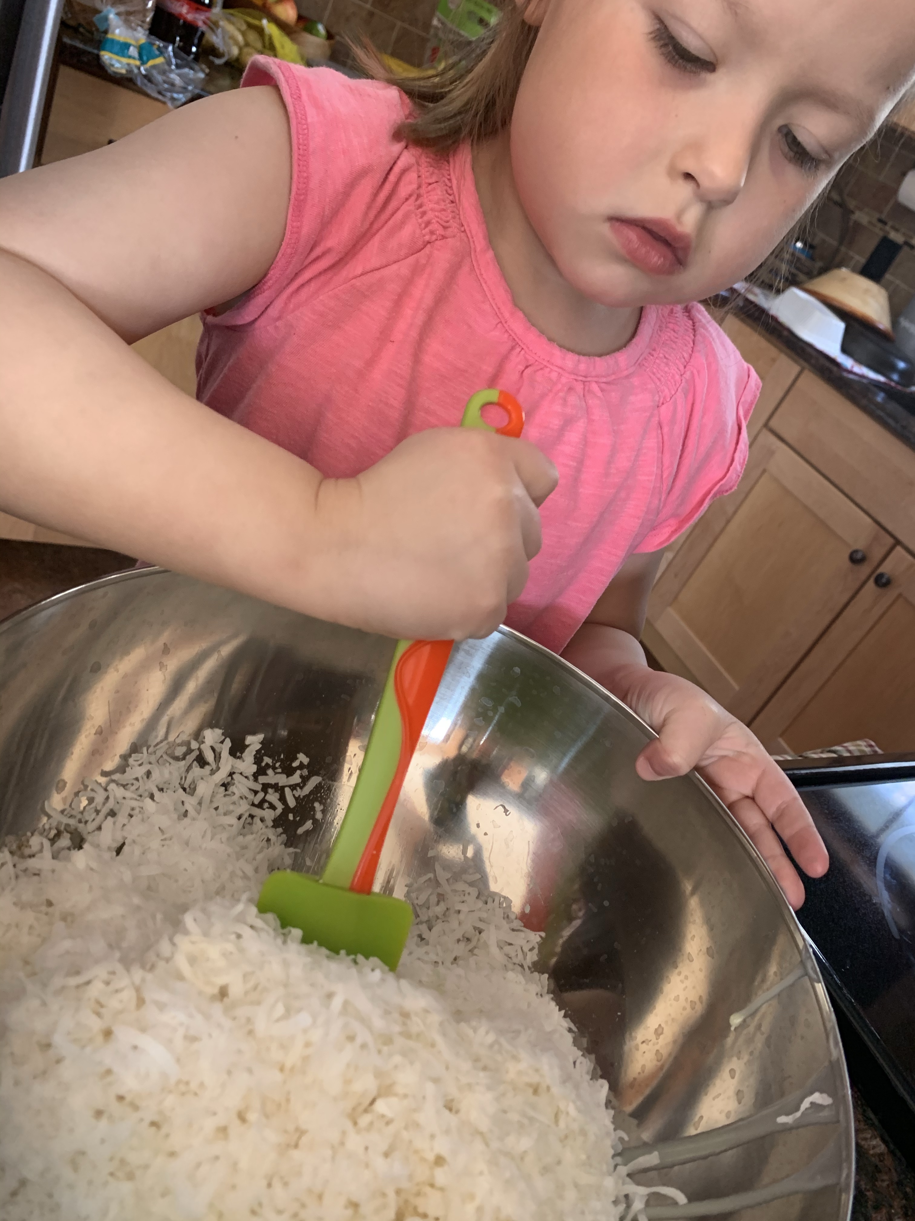 We started with the macaroons since they needed to bake then cool before we could dip them in chocolate. We went to King Arthur Baking (obviously, I’d hope you could guess that’s where we’d be heading by now) and found a recipe. https://www.kingarthurbaking.com/recipes/our-bakerys-coconut-macaroons-recipe These are no joke! After I opened up the can of sweetened condensed milk the kids were off. They didn’t need my help with this recipe (aside from separating the eggs, maybe some day they’ll do that on their own) the measurements and directions are simple enough to follow. They scooped them onto the cookie sheets and I put them in the oven! After they were cool I set up the big kid with a double boiler, she measured out the chocolate chips, and watched it until it was melted. Together they dipped the cookies and I think they turned out beautifully!
