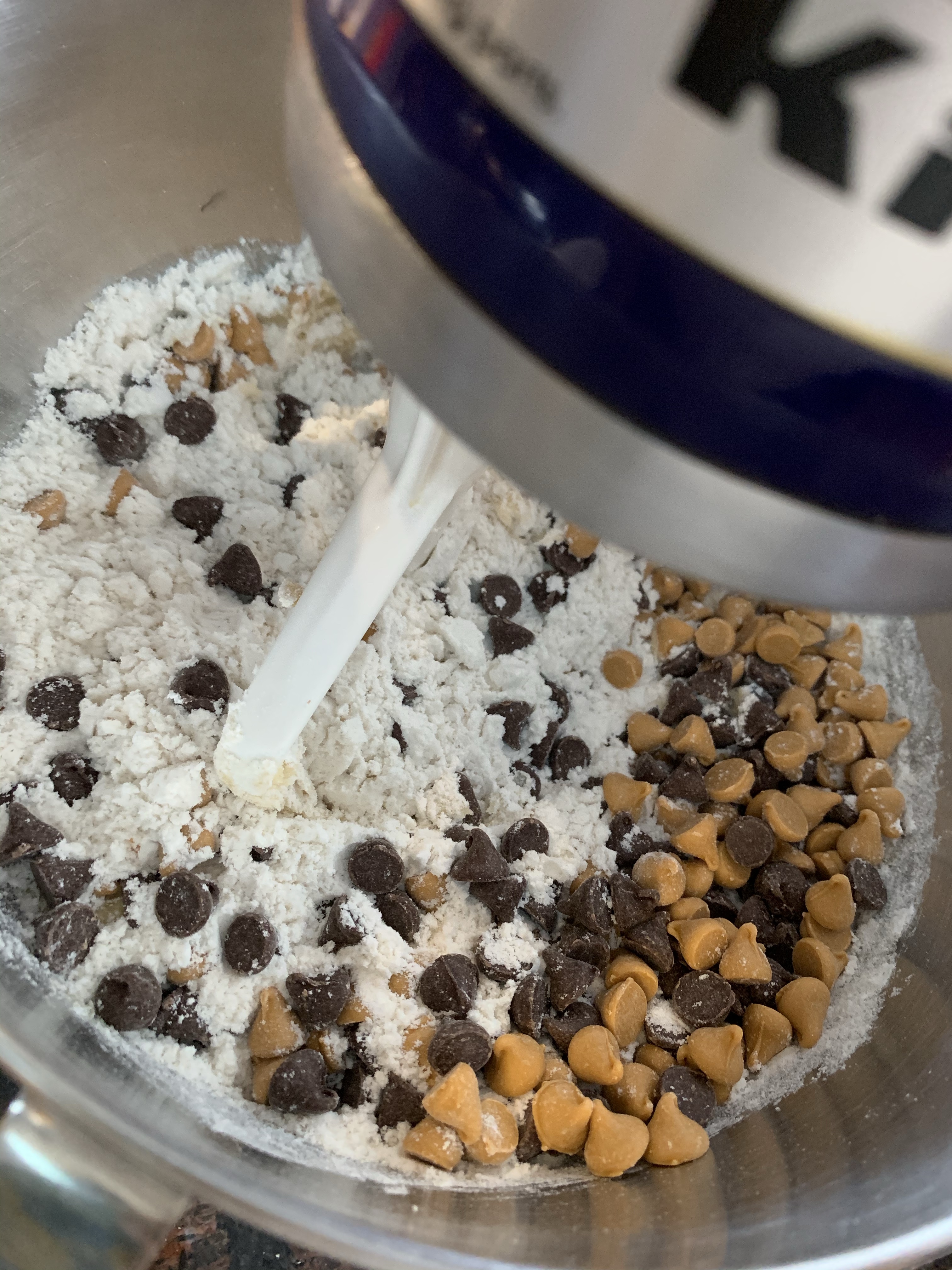 The second batch we made was my choice. There’s this wonderful little cookie shop up here in Vermont (there are several, but this one is special for a lot of reasons) and they sell frozen cookie dough for you to bake at home. Yes, they ship, yes you can have the link: https://www.vermontcookielove.com/ Their cookies are AMAZING, and my favorite is Mothers Love. It’s chocolate and butterscotch chip and HEAVENLY! The only trouble is I no longer eat gluten and they don’t make them without, so I’ve been missing them! I decided to fix it and try my hand at making my own. (Who knows how they’ll compare, they’re currently in the oven and smell great so I’m hopeful)
