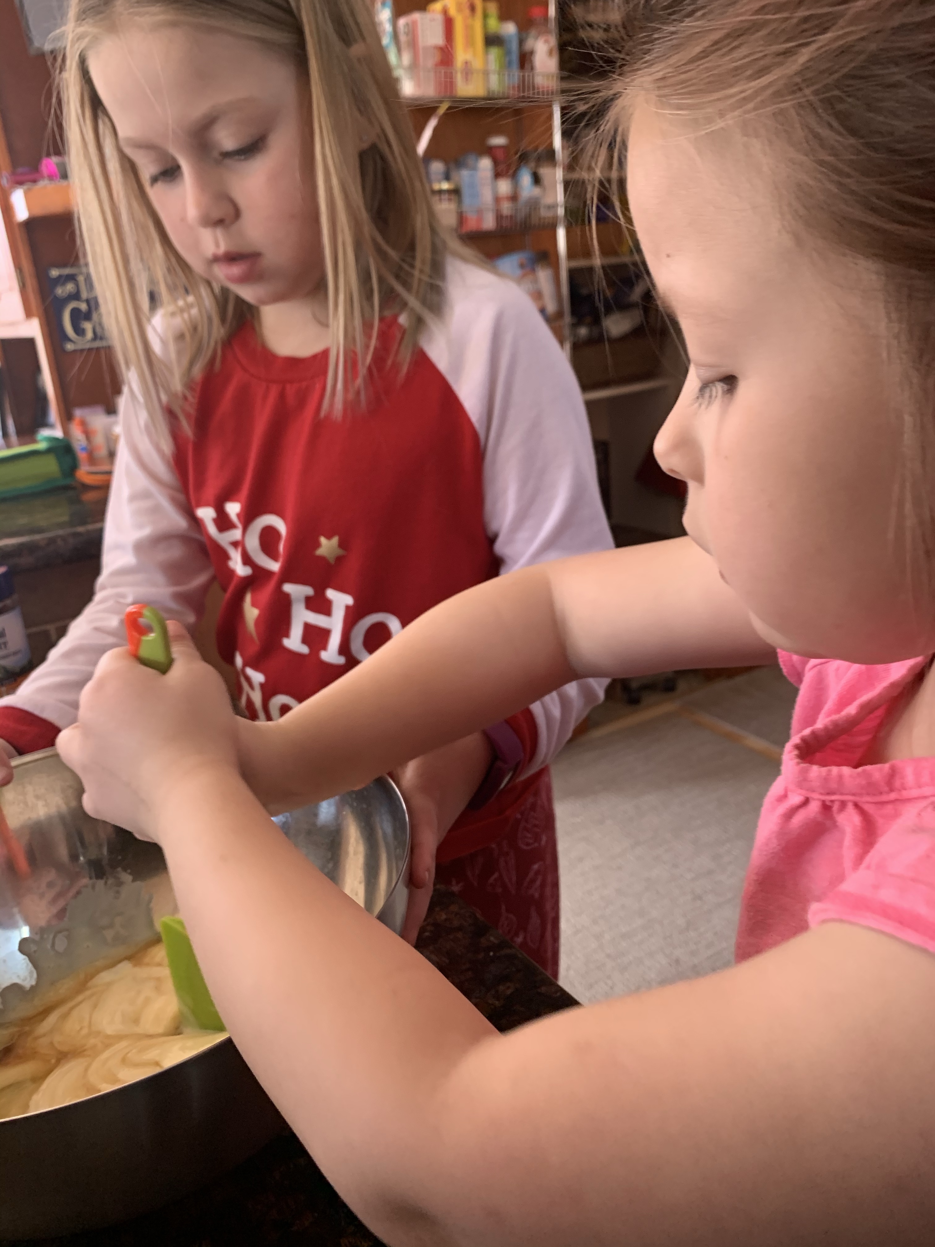 Sisters who bake together…oh I don’t know, there’s got to be some saying there. (And yes I know, STILL Christmas pajamas)