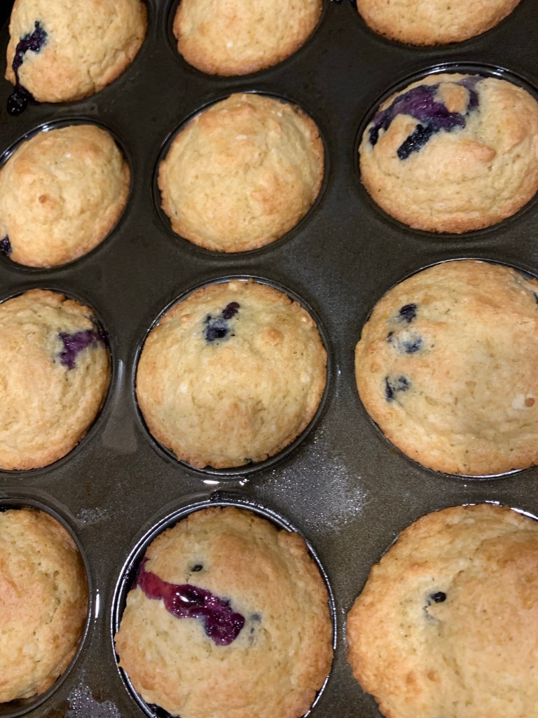Anyway, these muffins were so yummy! They’re light and full of flavor. The whole blueberries burst when you bite into them and there’s just enough lemon to hold it’s own without being overpowering. I froze half (this is a fairly sizable recipe, for us it made a full 2 dozen muffins) and the other half have been enjoyed for breakfasts, snacks, and lunches! Anytime is muffin time if you ask us.