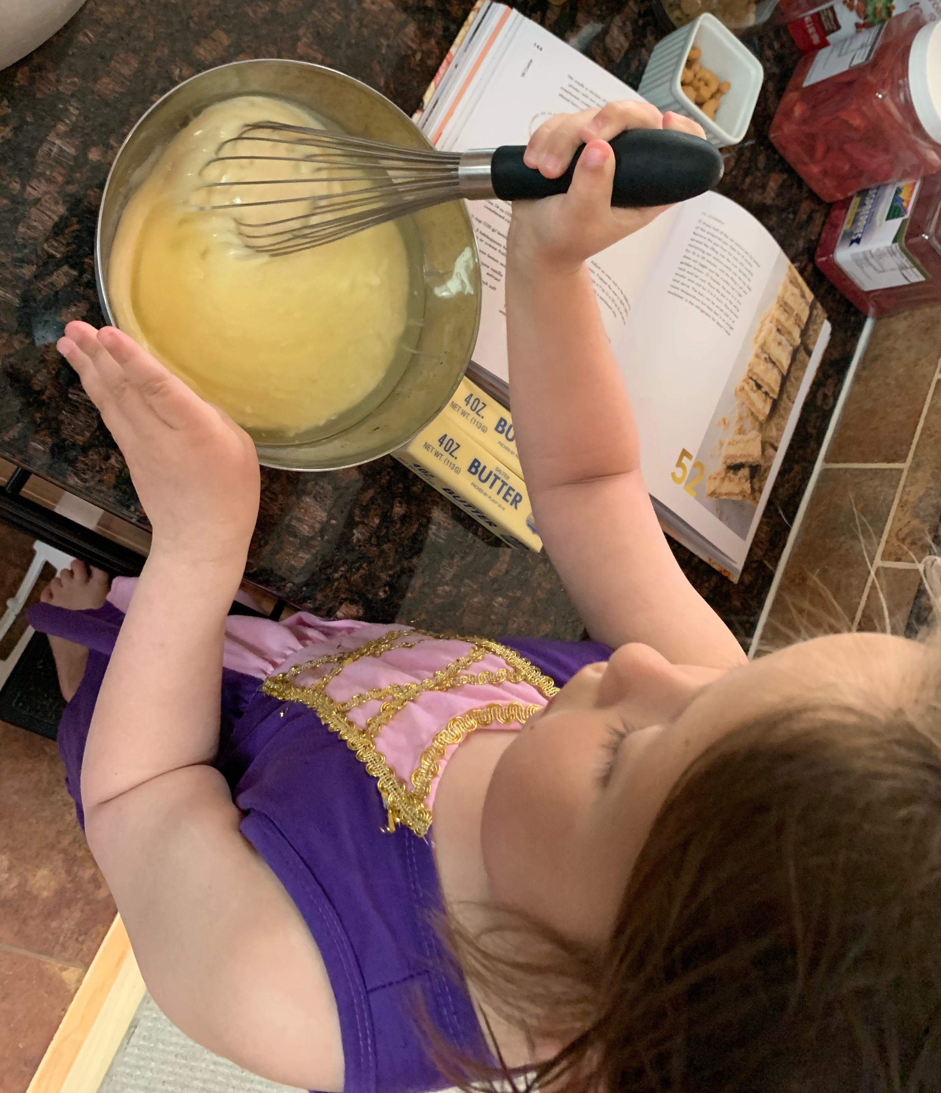 She’s getting SO confident in the kitchen. The more you do it, the more you’ll all feel more comfortable, and the more fun it will be!